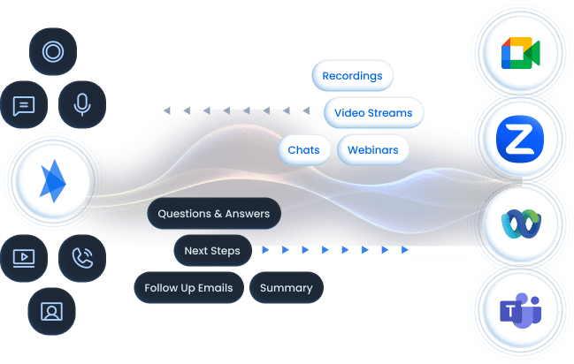 Symbl.ai integrates with all the top meeting platforms such as Zoom, Teams, Meet, and Webex.