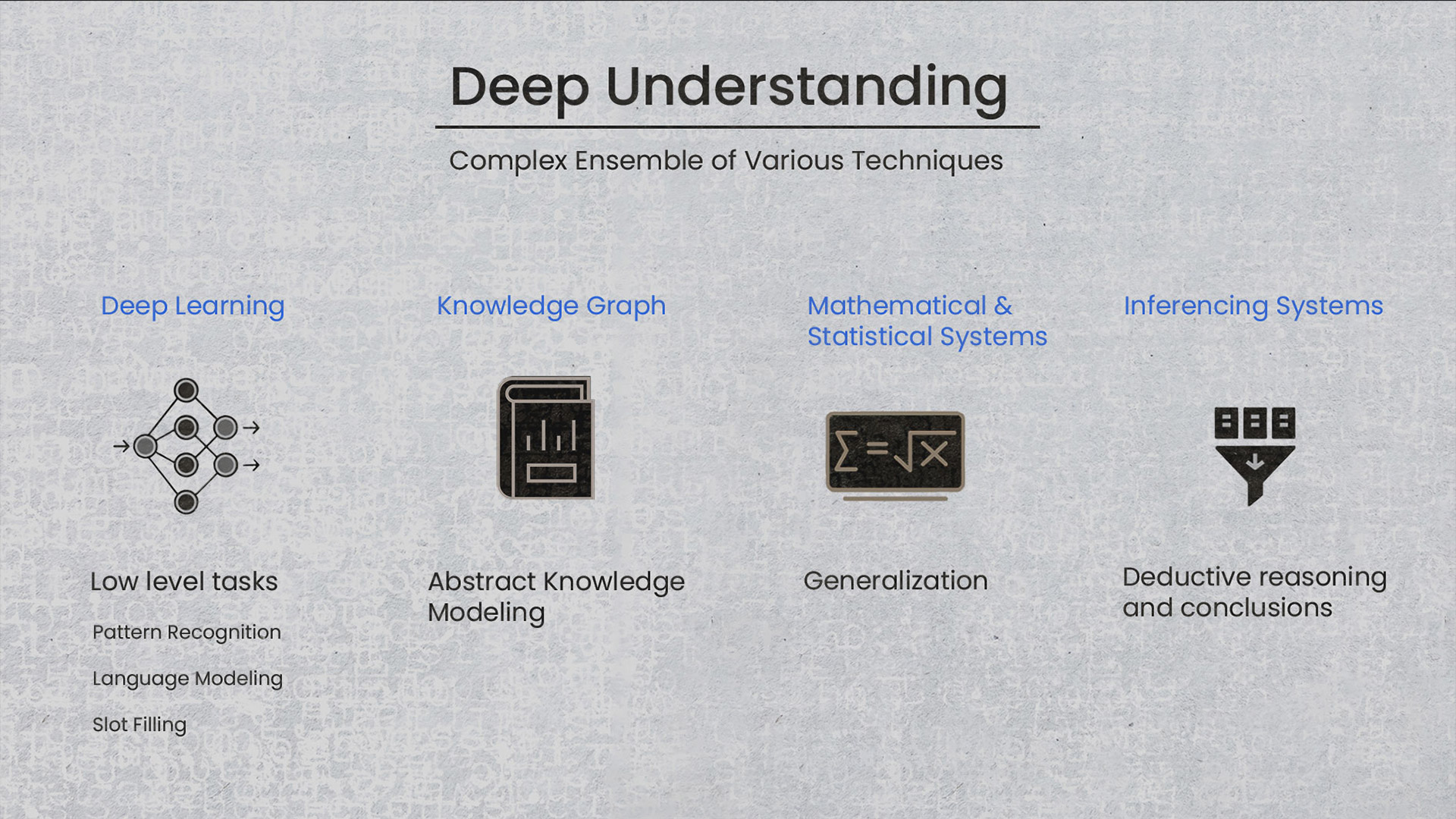 Techniques used in deep understanding intelligence.