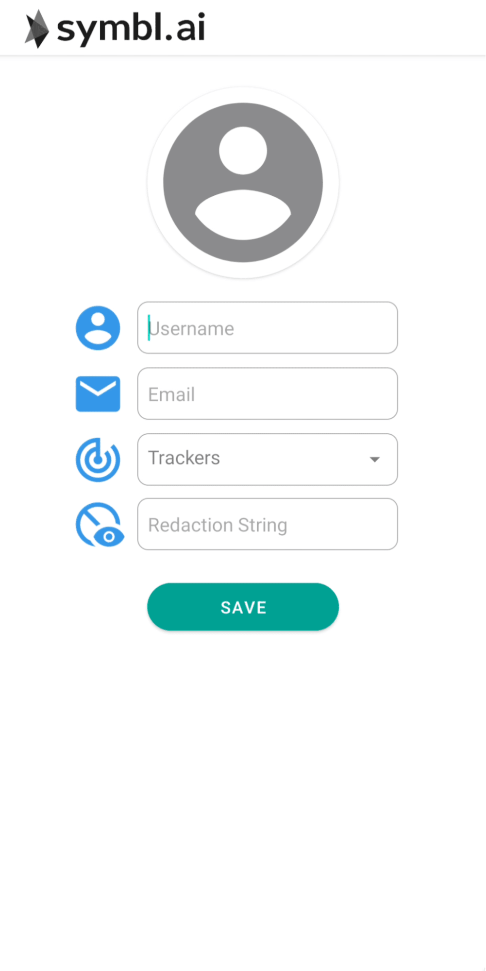 After clicking on the three dots at the top of the Join Room screen, you navigate to the Preferences screen. In the Preferences screen there are prompts for username, email, a prompt for selecting a Trackers API’s list of tracked words, a prompt for a redaction string. In the screen for Preferences below, hitting the Save button brings you right back to the Join Room / Create Room screen.