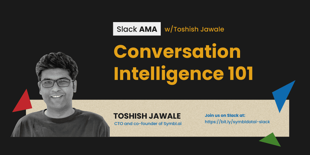We are excited to launch Symbl.ai’s AMA series. We had our first guest – Toshish Jawale, co-founder and CTO of Symbl.ai. The AMA event was hosted on our #general channel on Slack, focusing on Conversation Intelligence 101.