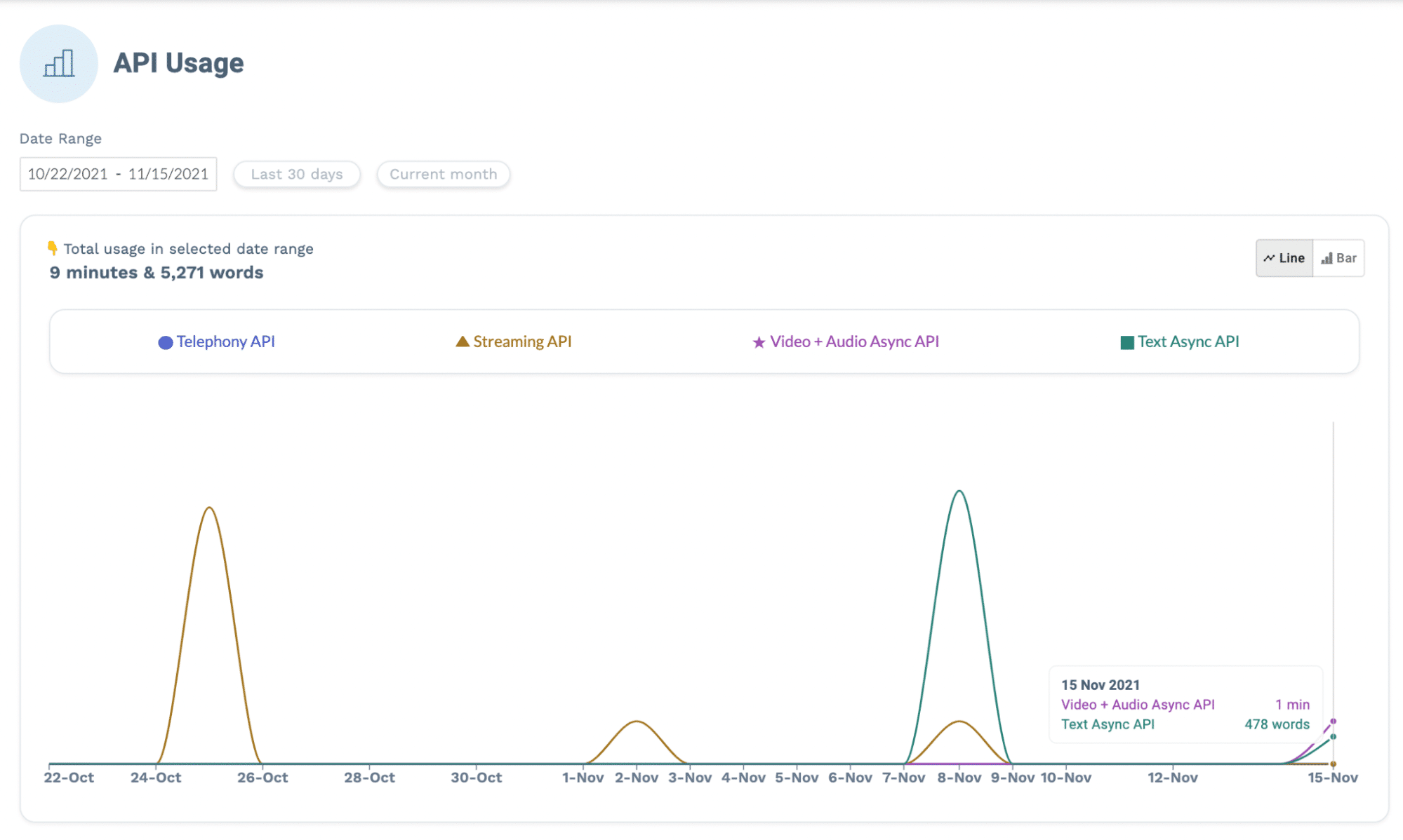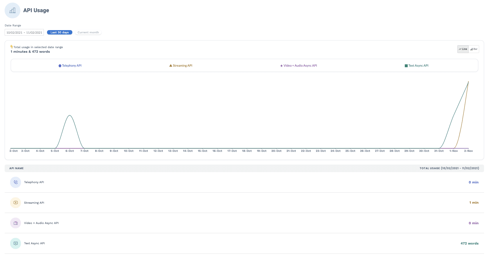 At Symbl.ai, we are constantly looking for ways to improve your developer experience. We are quite excited to announce the all new “API Usage” feature. Using this feature, you can dive deep into the world of Symbl.ai’s API analytics and usage!