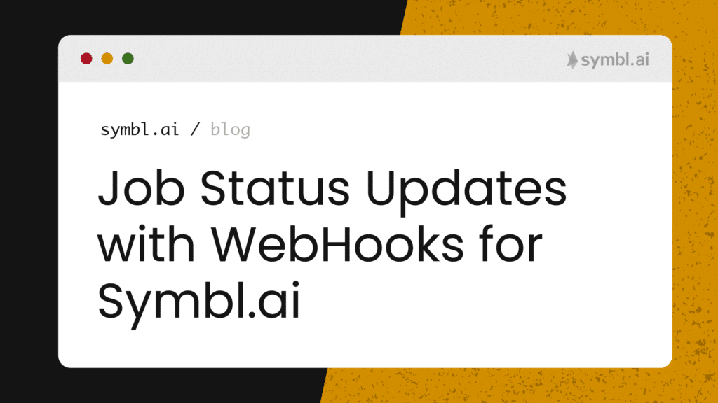 Symbl.ai’s Async API’s provide a REST interface that helps you to submit any recorded or saved conversations to Symbl.ai. When you submit a conversation, you’ll receive a Conversation ID unique to your conversation, and a unique Job ID which can be used to determine status and completion of Symbl.ai’s asyncronous conversation processing. Retrieving a job status can be accomplished either manually using the GET /job-status endpoint, or by passing a webhookUrl parameter in the initial async POST request in order to receive automatic job updates. This blog will focus on best practices for configuring webhooks.