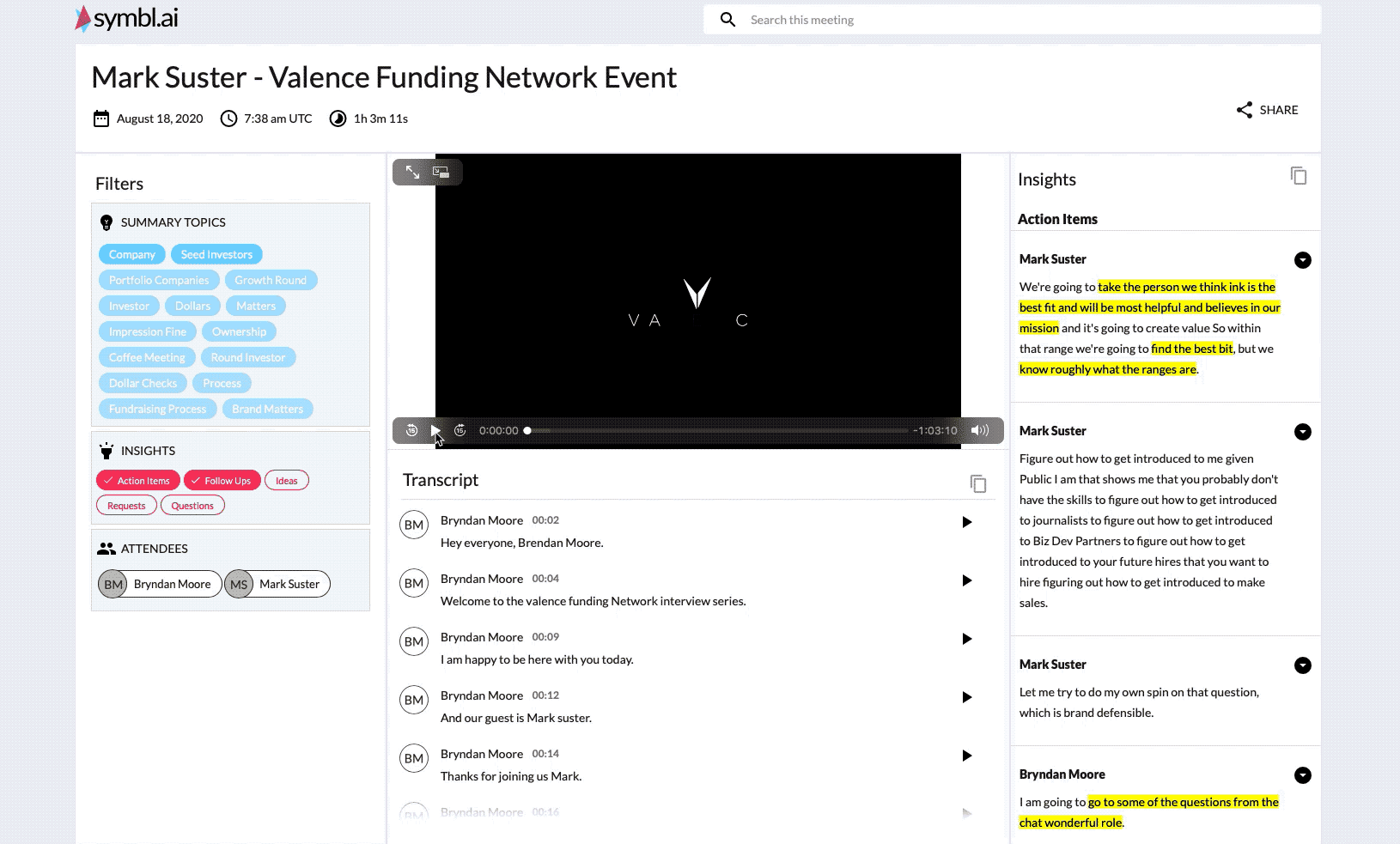 Example of a customized video summary experience with Symbl.ai